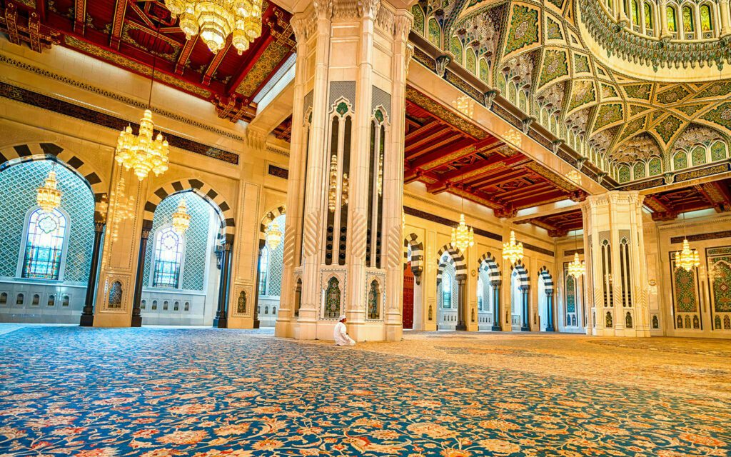Découvrez Mascate, le joyau de la mer d'Oman. Promenez-vous dans les salles détaillées et colorées de la Grande Mosquée du Sultan Qaboos,