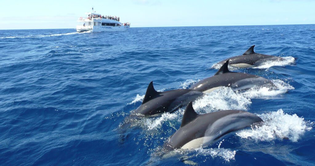 Vous serez étonné de la rapidité avec laquelle les dauphins poursuivent le bateau, à seulement 15 minutes de la marina.